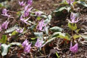 明るい山林に群生する春の花です。丈は10~20cmで、薄紅色の可憐な花は花びらが後ろに反り返り、中心部に濃い紫色の紋があります。