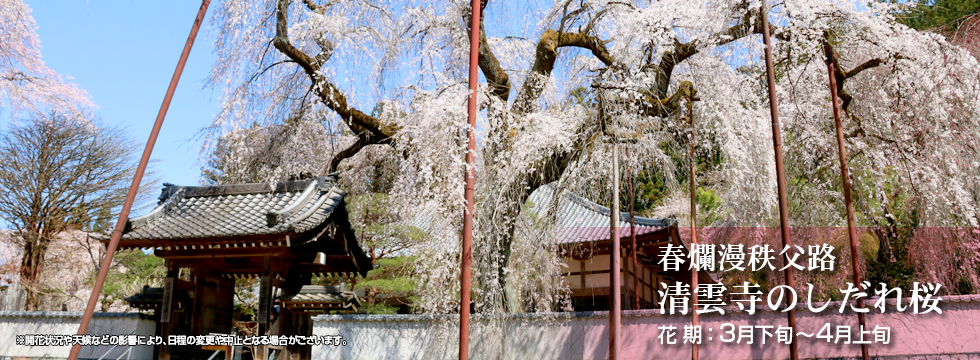 秩父市内では天候等により積雪・路面凍結が発生する場合があります。お車での観光をご計画されている方は、スタッドレスタイヤを装備する等、雪道への対策をした上でお越しくださいますようお願いいたします。