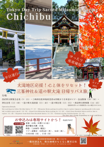 ※このツアーでは、今年7月11日に秩父市大滝地区の国道に落石が発生し、大滝への国道は通行止めとなり観光施設等に大打撃となったことから大滝地区応援の意味も込められています。