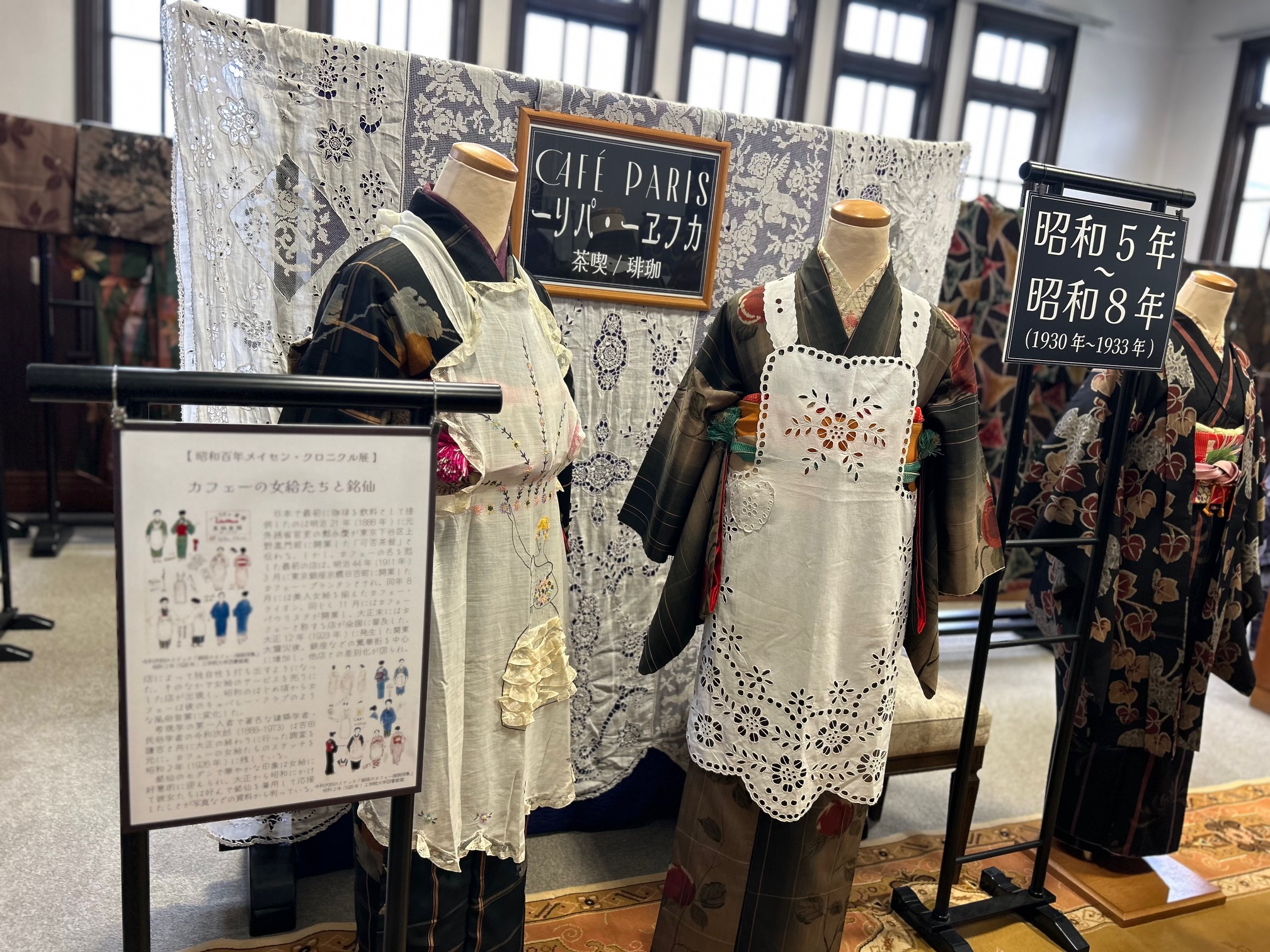 私が特に目を惹かれたのはエプロンを合わせたカフェーの女給たちをイメージした着姿!