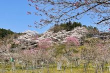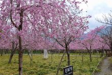 秩父市荒川にある、1年を通して様々な花を見ることができる花園。 春には約300本の松前紅豊桜が咲き誇ります。