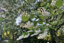 駐車場の藤は終了、その他もピークは過ぎてきました。手前に白い花のエゴノキがきれいに咲いていました。