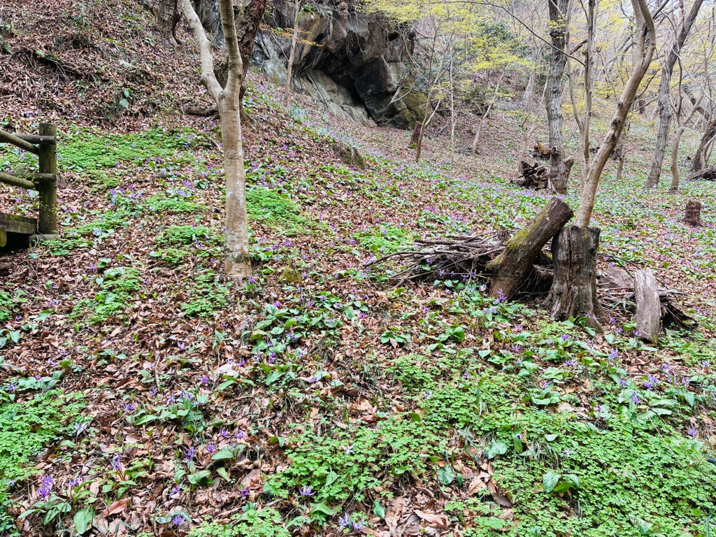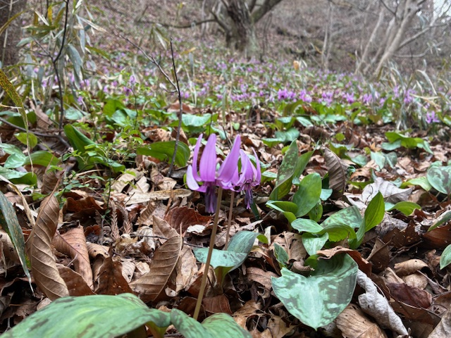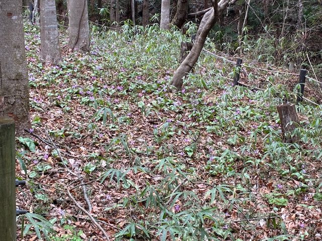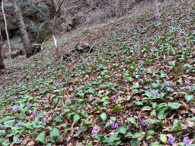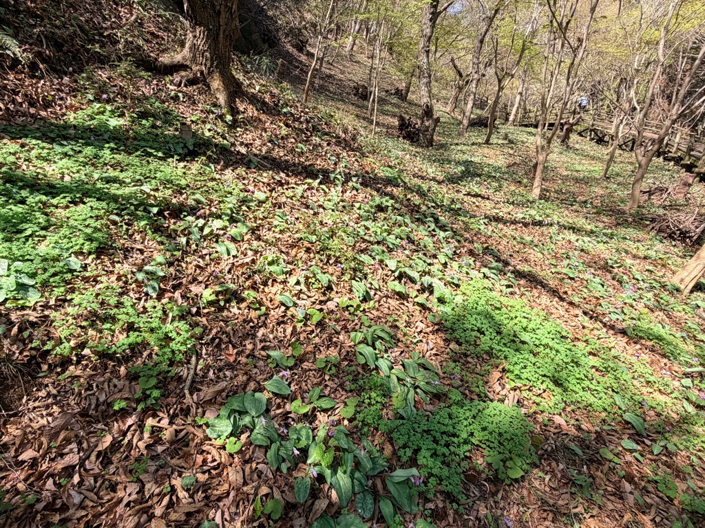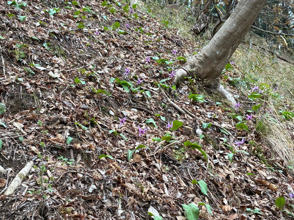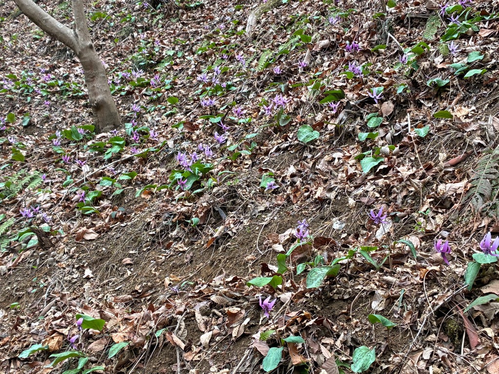 北側斜面と沢沿いは満開に近い状態です。西側斜面はまだ咲いていないものもありました。