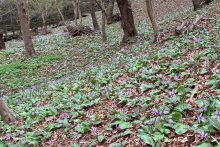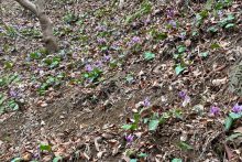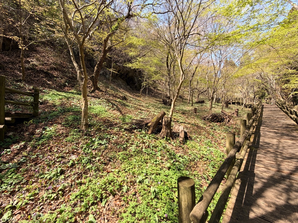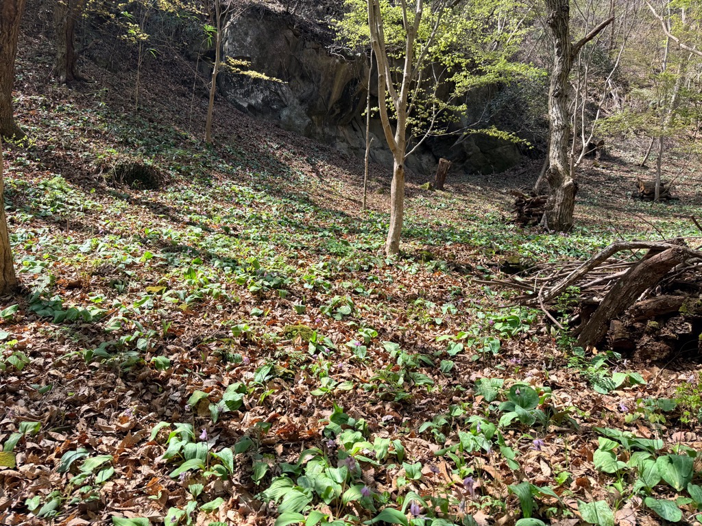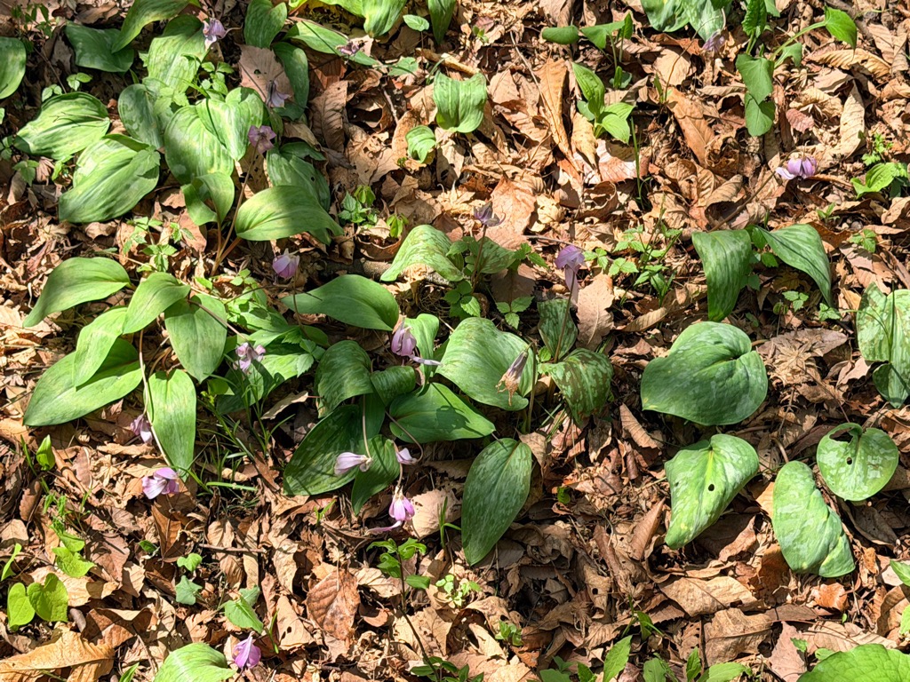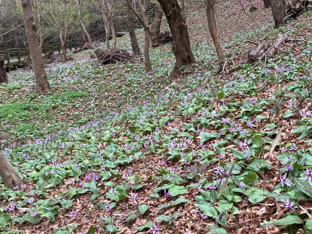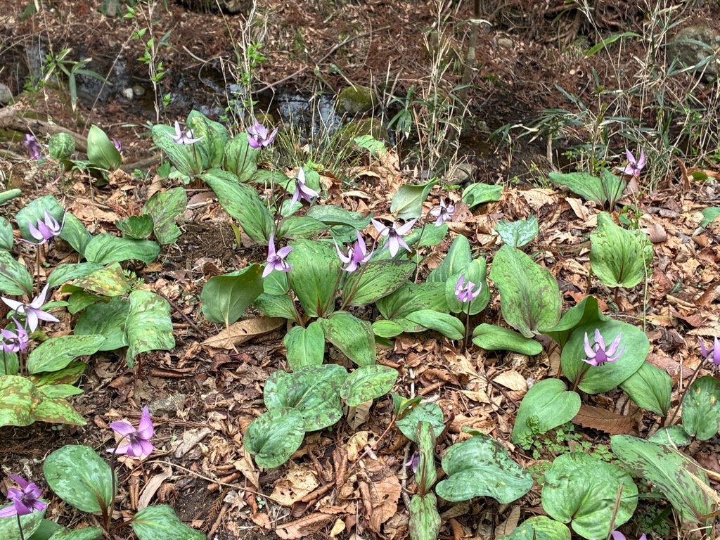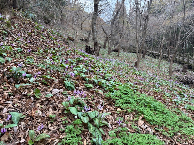 北側斜面と沢沿いは満開に近い状態です。西側斜面はまだ咲いていないものもありました。