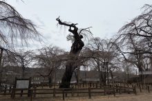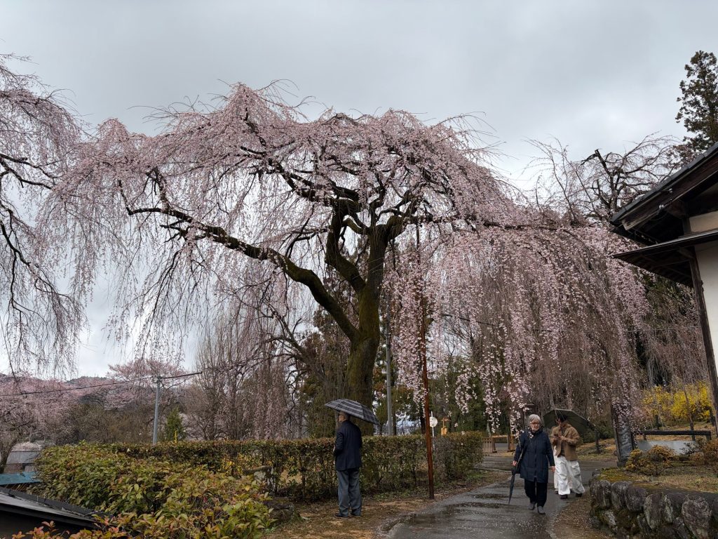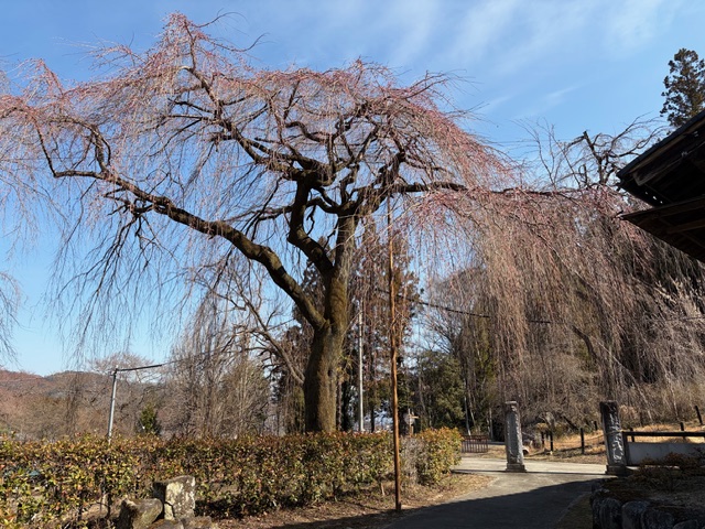 遅咲きのベニシダレ桜はこれからです。