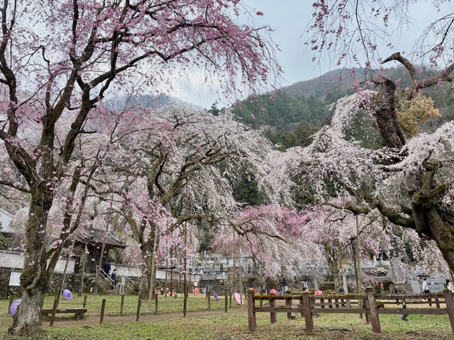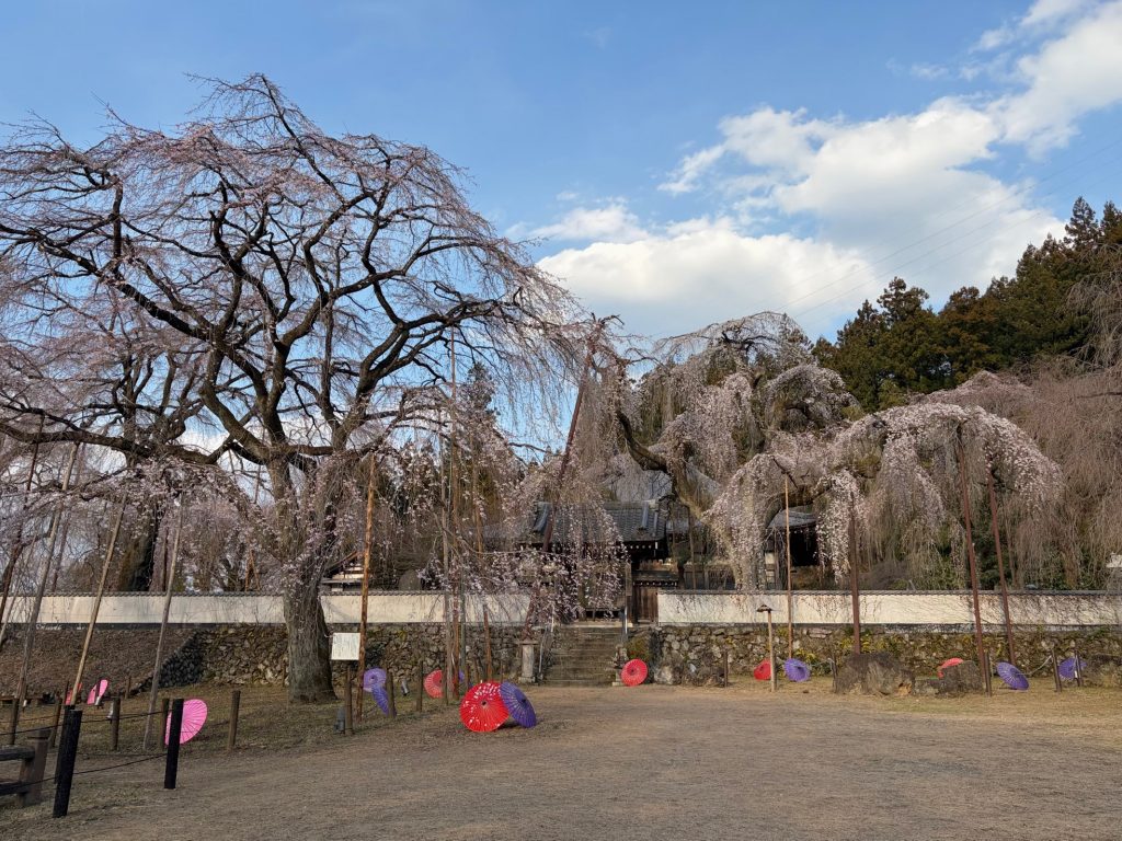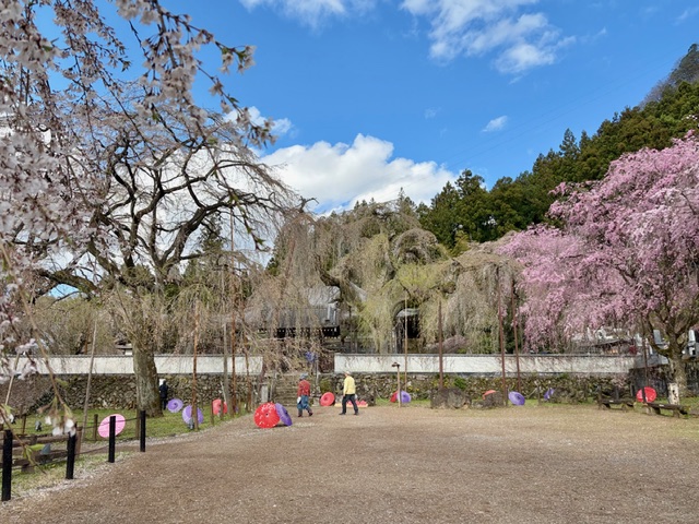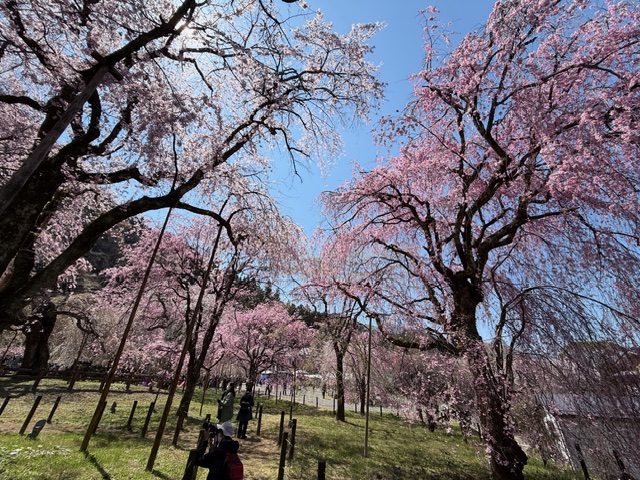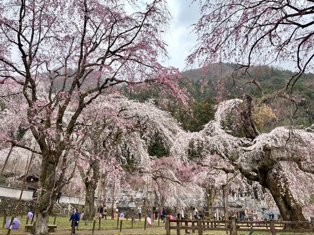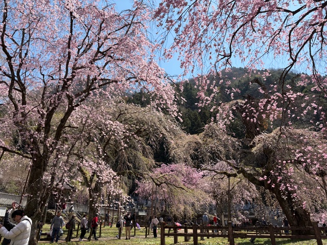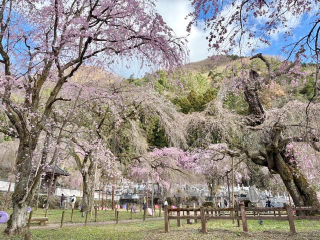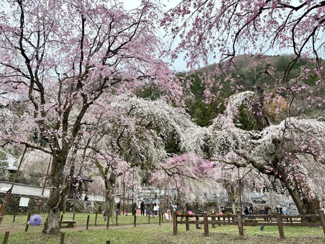 早咲きのエドヒガン桜と遅咲きのベニシダレ桜の両方が楽しめそうです。