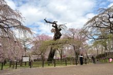 早遅咲きは満開を迎え、早咲きの桜は散り始めています。
