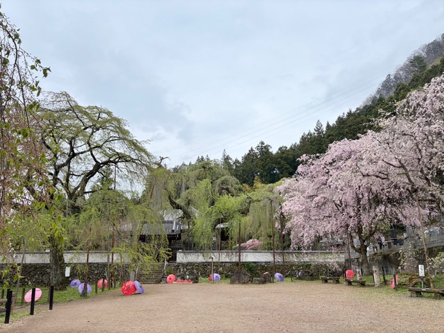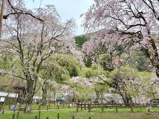 早咲きのエドヒガン桜と遅咲きのベニシダレ桜の両方が楽しめそうです。