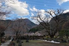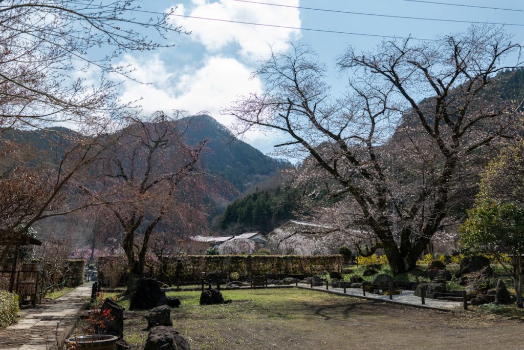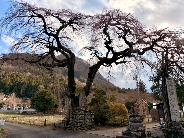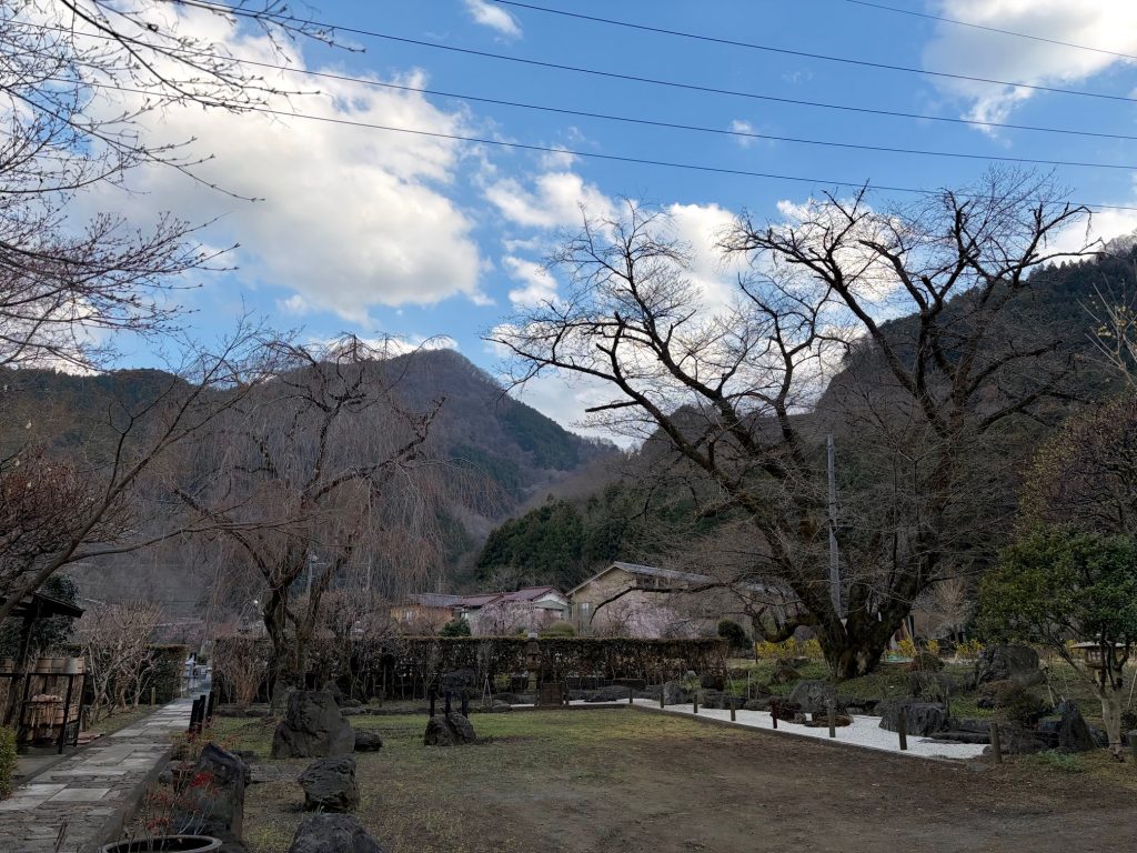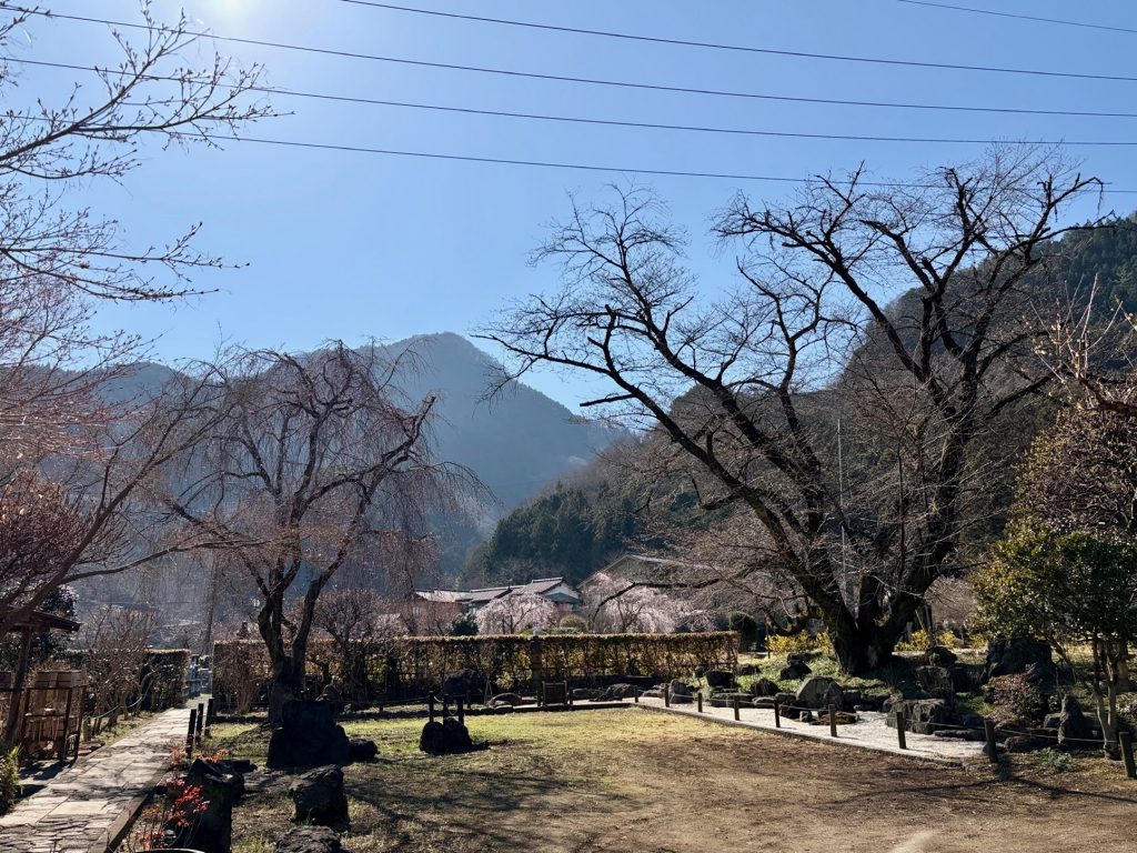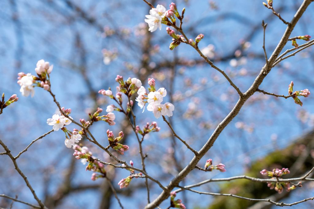 道路沿いのエドヒガン桜は3~4分咲きです。境内のソメイヨシノとベニシダレ桜は少し先になりそうです。