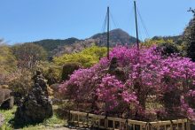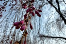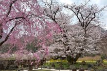 境内のベニシダレ桜は4〜5分咲きになりました。