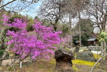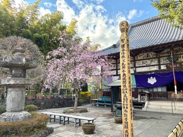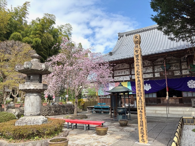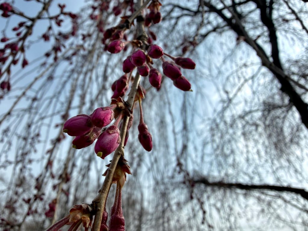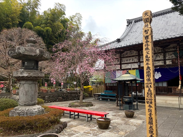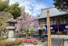 見頃を迎えております。境内のベニシダレ桜が2〜3分咲きになりました。