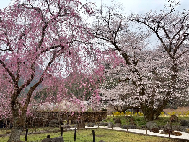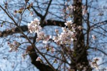 道路沿いのエドヒガン桜は引き続き見頃ですが、少しずつ散り始めています。