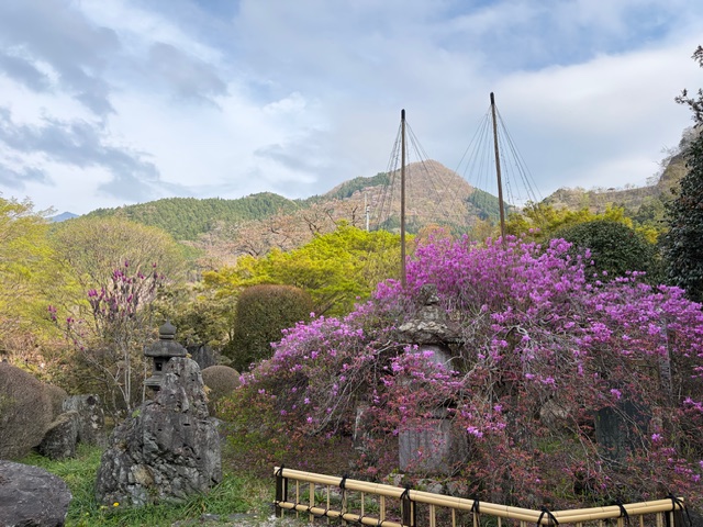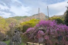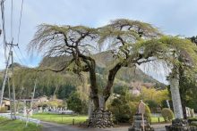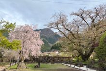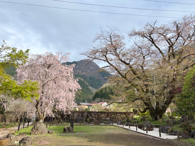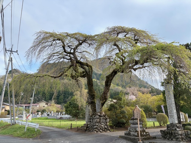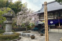 道路沿いのエドヒガン桜は引き続き見頃です。境内のベニシダレ桜も開花しました。
