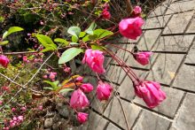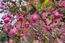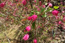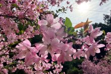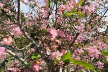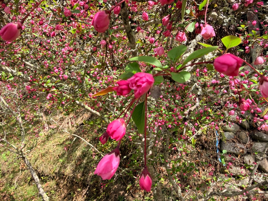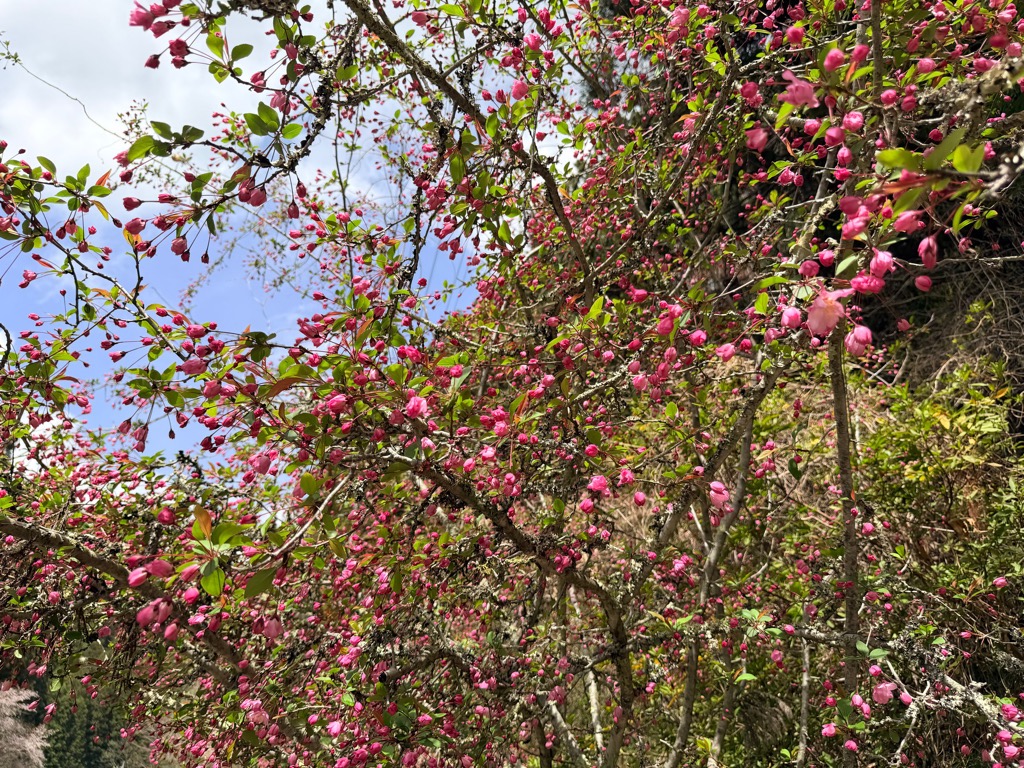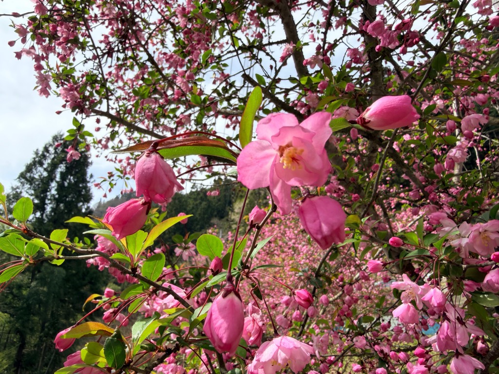 花が散り始めましたが、まだ咲いているものもありました。4月19日(日)にはカイドウ祭りも開催されます。