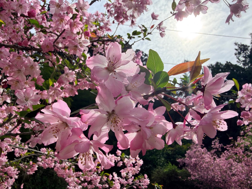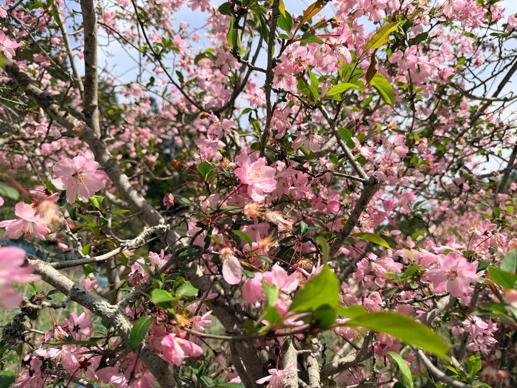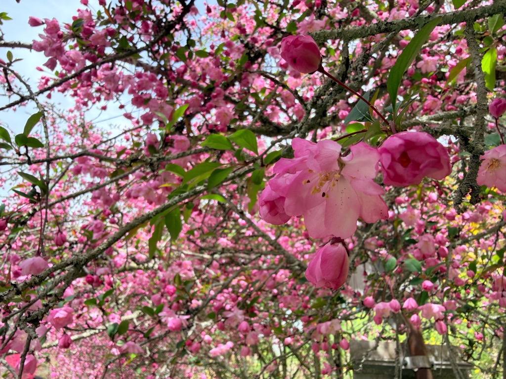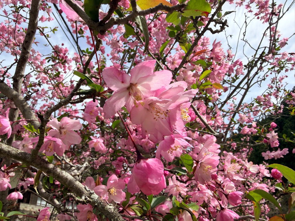 満開です。今週末(4月19日)日曜はカイドウ祭りがありますので、ぜひお越しください。
