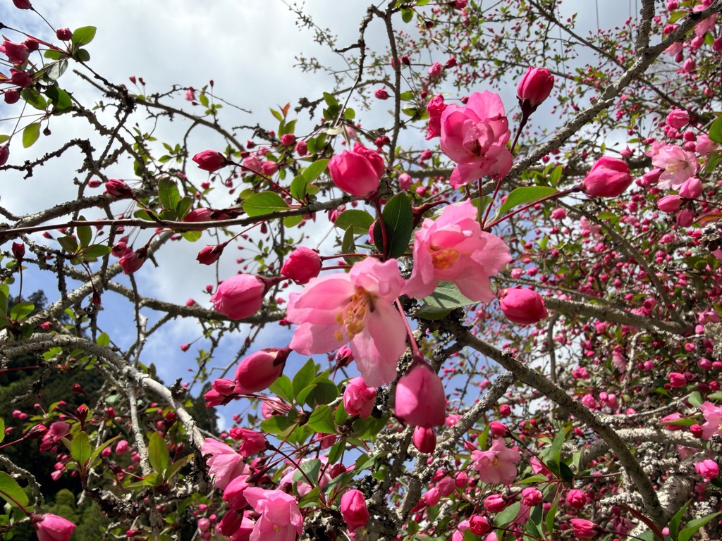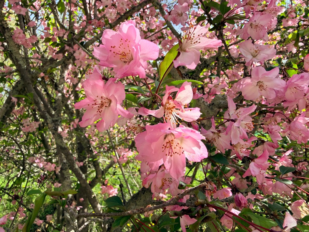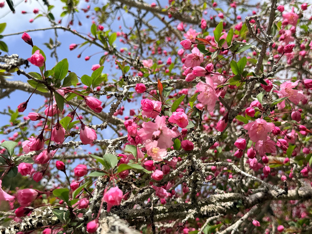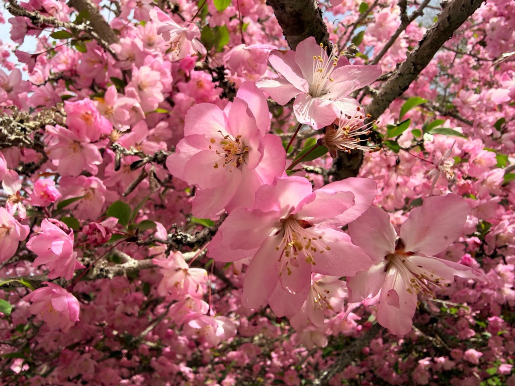 満開です。今週末(4月19日)日曜はカイドウ祭りがありますので、ぜひお越しください。