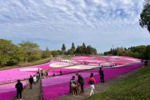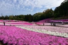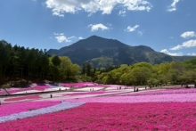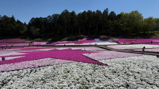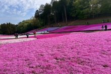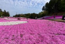 「芝桜まつり」初日は晴天に恵まれ、北西側・南西側斜面は2分咲きまで進んできました。
