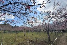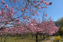 開花し始めました。来週には見頃になりそうです。道中の早咲きの桜は満開です。