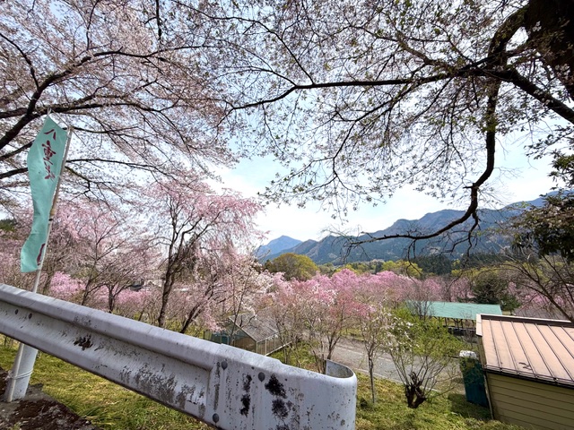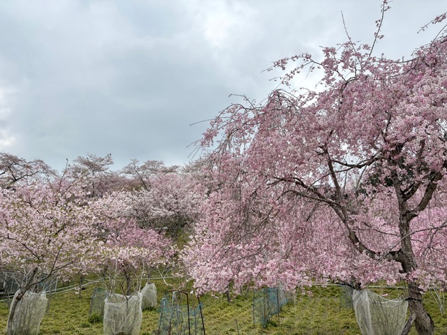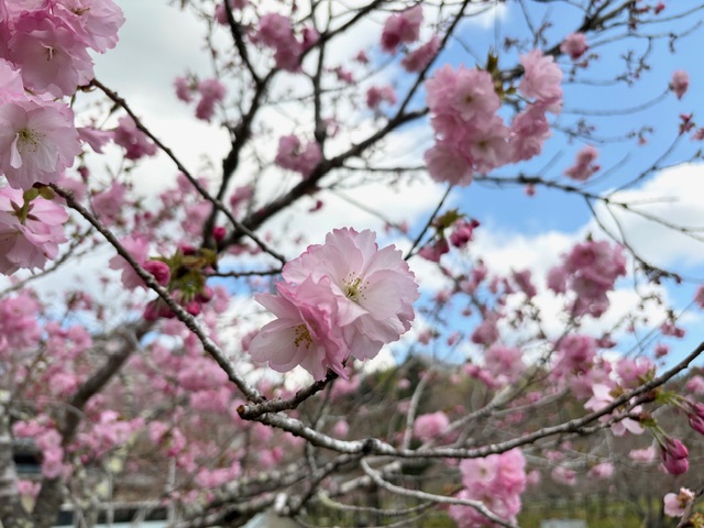 八重桜は6~7分咲きほどでそろそろ見頃を迎えます。引き続き道中の桜は見頃です。