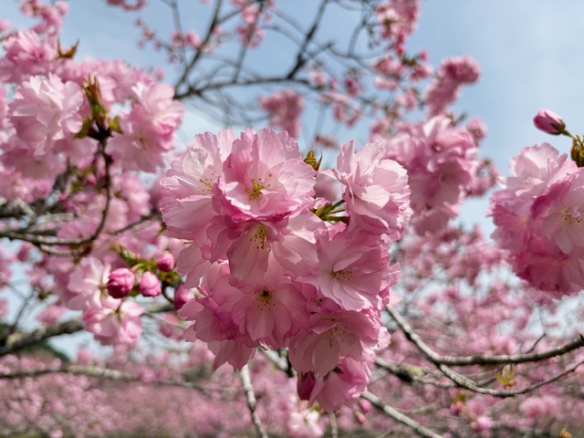 見頃を迎えています。週鮮やかに色づいた八重桜を観にぜひお出かけください!